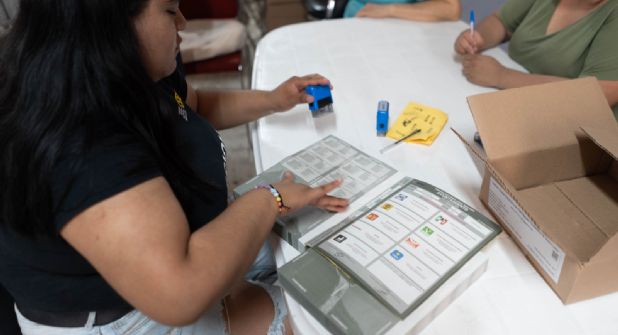 La funcionaria electoral explicó que el proceso que seguía en ese momento al recibir las cajas de boletas era contabilizarlas, clasificarlas y sellarlas antes de iniciar su distribución.
