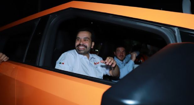El vehículo fue adaptado al color naranja, el cual representa al partido de Movimiento Ciudadano, y Álvarez Máynez ha viajado junto con García en su gira por el país en su campaña presidencial.