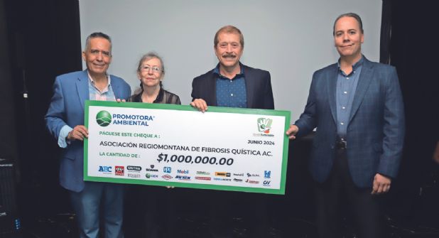 Monterrey.- A través de la carrera PASA RUN FOR WATER 2024, un millón de pesos fue entregado por Promotora Ambiental (PASA) y Fundación Mundo Sustentable a la Asociación Regiomontana de Fibrosis Quística.