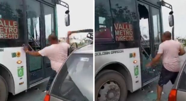 Monterrey.- Una pelea a golpes entre un chofer de ruta urbana y un automovilista causó daños en la movilidad pública, ya que el conductor rompió el cristal de la puerta del camión con un machete.