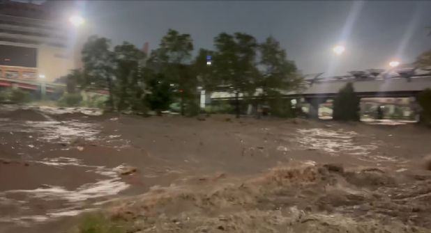 - Inundaciones sobre el vado Paseo de la Amistad y Circuito Mundial, colonia Infonavit Monterreal.