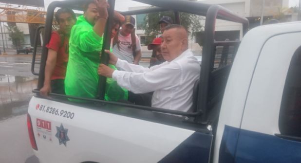 Escobedo. - Elementos de la Secretaría de Seguridad Ciudadana de Escobedo están apoyando a trasladar a los ciudadanos que se quedan varados por la falta de transporte público.