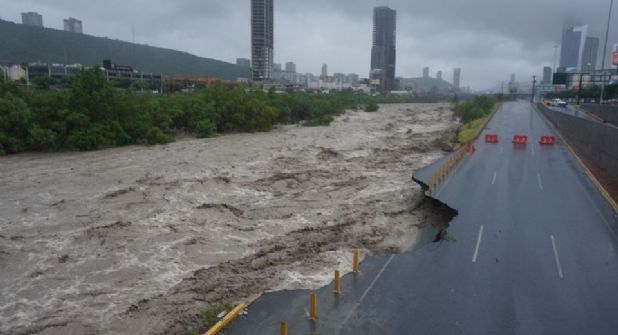 Monterrey.- Las fuertes lluvias derivadas de la tormenta tropical 'Alberto', provocaron el desbordamiento del río Santa Catarina, informó esta mañana Protección Civil de Monterrey.