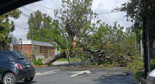 A través de imágenes captadas por un ciudadano, se apreciaba al mencionado árbol inclinado aún sosteniéndose de sus raíces, pero el tamaño y la densidad del mismo tapaba el ancho de toda la calle Río Nilo Cruz, imposibilitando la circulación en ambos sentidos, por lo que debió ser acordonada.