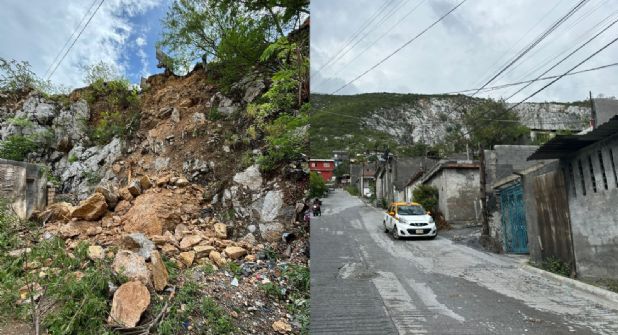 Pese a que las intensas lluvias originadas por la tormenta tropical “Alberto” en la entidad dieron tregua este viernes 21 de junio, en algunas zonas del área metropolitana, los efectos de las anteriores precipitaciones ocasionaron un deslave en el cerro del Topo Chico.