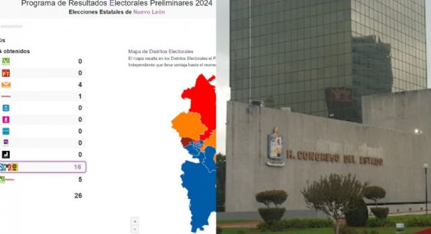 Al corte de las 00:00 horas del 3 de junio, los datos preliminares de las autoridades electorales arrojan que “Fuerza y Corazón por Nuevo León” ganó 16 de 26 distritos locales.