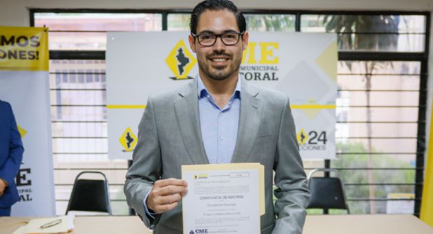 El documento en donde se hace oficial la victoria en la contienda del candidato de la coalición "Fuerza y Corazón por Nuevo León" le fue entregado este sábado en la Comisión Municipal Electoral y de Participación Ciudadana santiaguense.