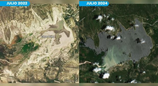 Las imágenes compartidas realizan un comparativo de cómo se encontraba el vaso en julio del 2022, cuando arreciaba la crisis por falta de agua en la entidad con el panorama actual Enel mismo periodo durante este año 2024.