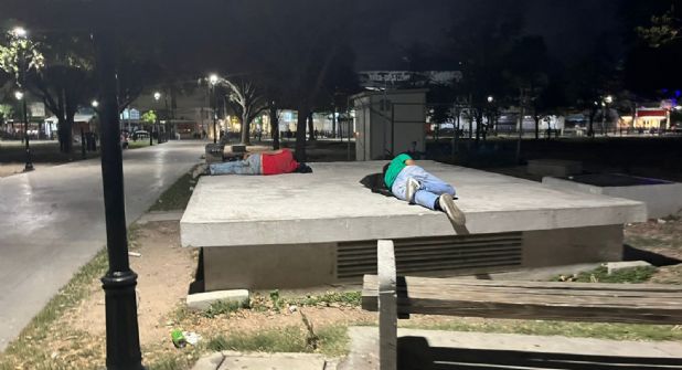Monterrey.- Migrantes, gente que vive en condiciones de calle y personas en estado de ebriedad son los que pasan sus noches en el parque La Alameda, en el centro de Monterrey.