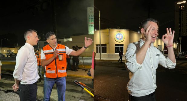 El alcalde de Monterrey, Luis Donaldo Colosio Riojas, supervisó las obras realizadas la noche del martes en el cruce de Ruperto Martínez y Héroes de 47.