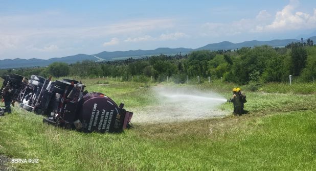 Hasta el momento, de acuerdo con Protección Civil de Nuevo León permanece cerrada la circulación en dirección Laredo-Monterrey debido a que el tractocamión con doble semirremolque tuvo una fuga y expide vapores tóxicos.