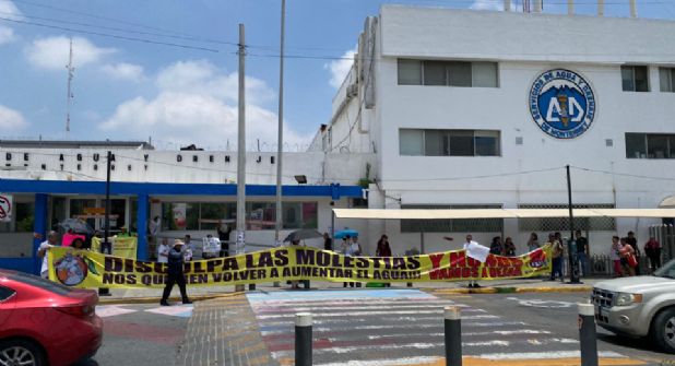 Monterrey. - Vecinos de diversas colonias afectadas por falta de suministro de agua, se dieron cita en las oficinas de Agua y Drenaje, en Juan Ignacio Ramón, para de cierto modo "clausurar" el recinto.
