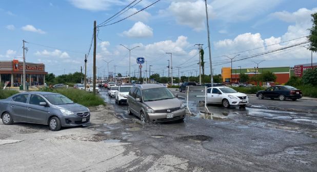 Además de la persistencia del problema, las recientes lluvias y la falta de mantenimiento tienen a esta y varias vialidades aledañas inundadas de agua y plagada de pozos, que dificultan el tránsito y dañan las llantas y suspensión de los vehículos.