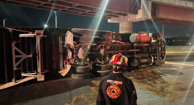 De acuerdo a los primeros informes, el conductor del tráiler perdió el control de la unidad tras golpear con el cordón de la banqueta, por lo que terminó volcado.