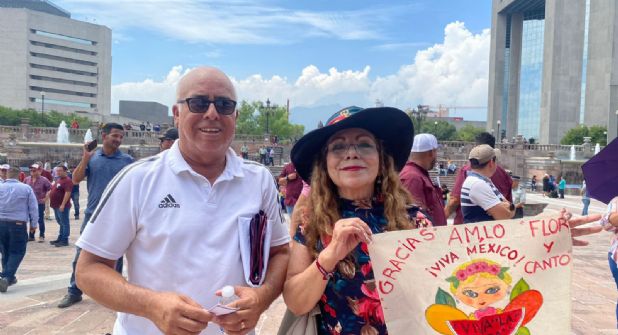 Por su parte, Elizabeth Banda, que llevaba consigo una playera con la leyenda "Un verdadero hombre nunca habla mal de López Obrador", mencionó que en el evento se encontraba la esencia obradorista de Nuevo León.