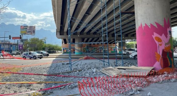 Se trata de otro puente elevado que está ubicado en el cruce de la avenida Morones Prieto y Jiménez, en la colonia Casco Urbano, el cual presenta daños, por lo que lleva más de un mes que no ha sido reparado y se estima que esta problemática dure un considerable tiempo.