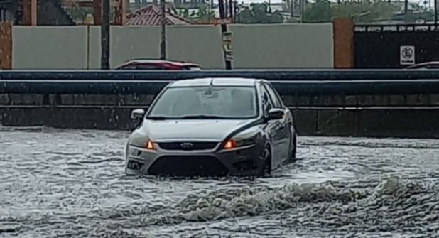 En ese vado se observó que el nivel del agua se acrecentaba amenazadoramente, mientras que en la vialidad la cantidad de agua impidió temporalmente el paso de los vehículos, cuyos conductores decidieron no arriesgarse.