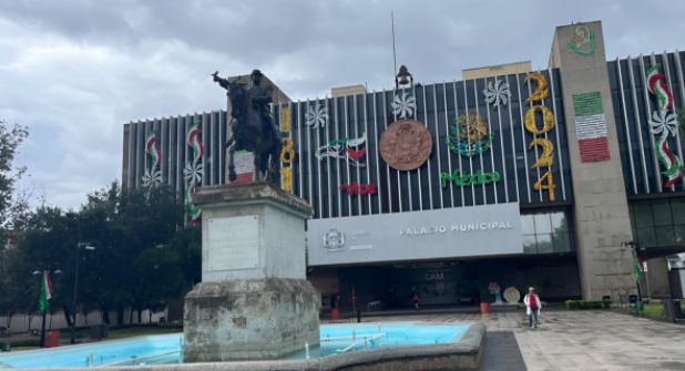 Además, el Palacio Municipal de Monterrey resalta con sus grandes ornatos como un águila, rehiletes, el escudo nacional, frases de "Viva México", así como grandes números dorados del presente año.