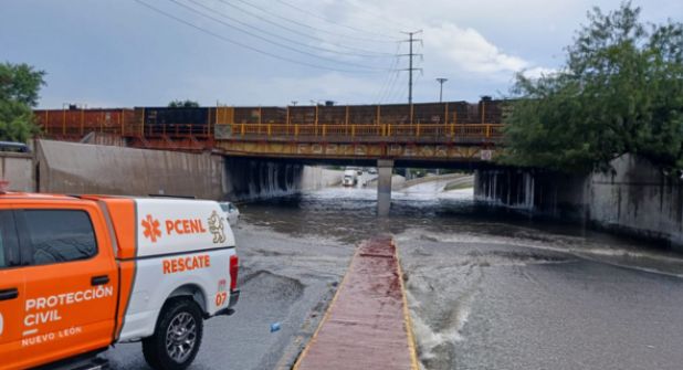 Monterrey.- Debido a la lluvia que se presentó durante la tarde de este domingo, autoridades de Protección Civil procedieron a cerrar el cruce de Fidel Velázquez a la altura de Copan, en el municipio de Monterrey.