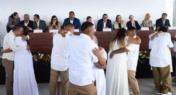 Apodaca.- Se llevaron a cabo 29 bodas colectivas en el Centro de Reinserción Social 1 Norte, ubicado en Apodaca, Nuevo León, así como el reconocimiento de paternidad de 31 menores.