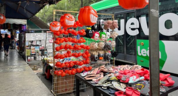 Máscaras, calabazas, sombreros de brujas y maquillaje fueron algunos de los productos que se pudieron observar mientras el equipo de ABC Noticias recorría el centro de Monterrey.