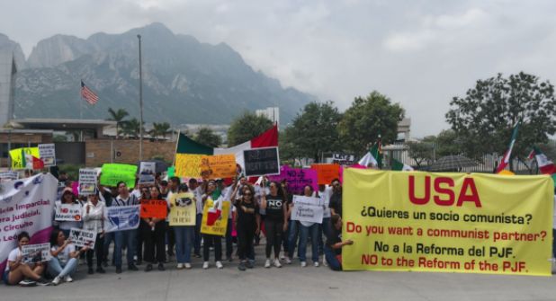 Monterrey. - Cientos de trabajadores del Poder Judicial de la Federación en Nuevo León, volvieron a protestar para expresar su rechazo contra la reforma judicial impulsada por el presidente Andrés Manuel López Obrador en los consulados de Estados Unidos y Canadá.
