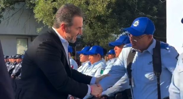 Monterrey. - Adrián de la Garza, alcalde de Monterrey, tuvo esta mañana su primer evento al frente de la administración en donde realizó el tradicional pase de revista a la policía regia.