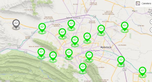 Mientras que en el municipio de García Noroeste 2 la estación en color gris se encuentra en mantenimiento.