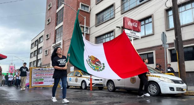 En punto de las 10:00 de la mañana salieron de las instalaciones de los Juzgados de Distrito, Civiles, Penales y Administrativo ubicado en Constitución para marchar en contingente y cargados de víveres para repartir a los derechohabientes del Hospital de Zona No° 21 en la Avenida Pino Suárez.