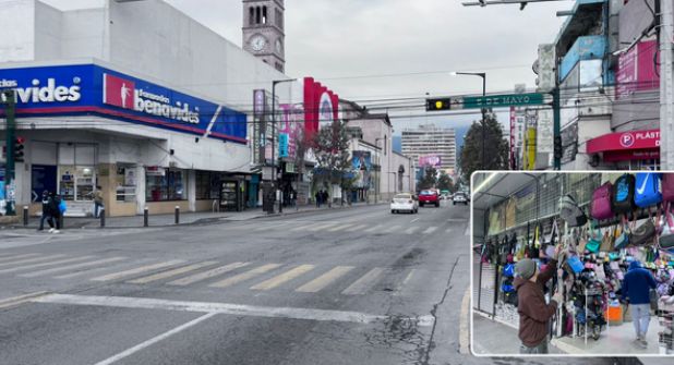Monterrey.- Una de las avenidas más concurridas de la ciudad, como lo es la avenida Juárez, se mantuvo con poco movimiento ante las bajas temperaturas, lo que afectó a los diferentes comercios que se encuentran sobre esta arteria y que reportaron bajas ventas ante la falta de clientes.