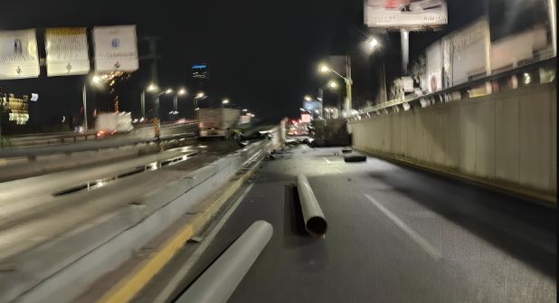De acuerdo a los primeros informes, un tráiler con dos remolques de materiales de construcción se impactó contra el barandal de contención y posteriormente se volcó, obstruyendo la vialidad en la zona.