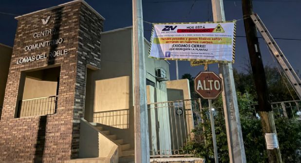 La información expuesta en dichas lonas incluye el logotipo de la empresa y frases como “nos está envenenando, metales pesados y gases tóxicos están entrando en nuestros cuerpos. ¡Exigimos cierre!, ¡Que reubiquen la planta!”.