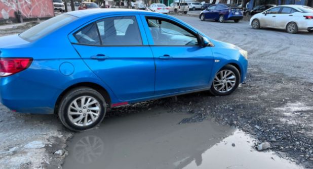 Mientras que sobre la calle B, además de los baches se suma una fuga de aguas negras que se acumula en los mismos hoyos, por lo que los automovilistas salpican la carrocería al pasar.