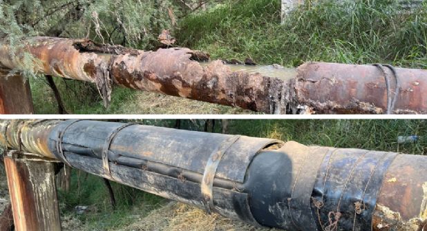 Guadalupe.- Dos semanas después de que ABC Noticias reportara el deterioro avanzado del ducto de agua sanitaria que atraviesa por encima el Río La Silla en Guadalupe, Agua y Drenaje de Monterrey aplicó otro ‘parche’ en el tubo, mientras desarrollan un plan integral de reparación.