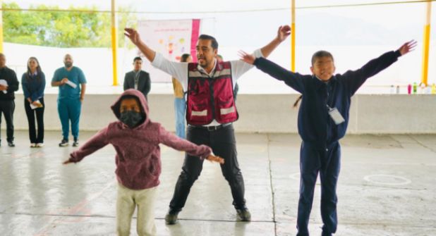 “Llevamos esta activación física a las escuelas, queremos que las niñas y niños tengan buena salud, que ejerciten su cuerpo y esto les ayude en la prevención de enfermedades, como la obesidad infantil”, dijo.