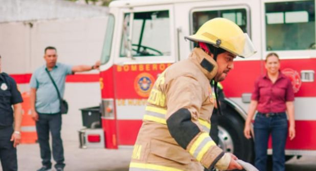 Santa Catarina.- El alcalde de Santa Catarina, Jesús Nava Rivera, cambió por un momento los documentos de su escritorio por el equipo de un rescatista, al portar un casco y chamarra de bombero para compartir una jornada especial con los elementos de la Estación 4 La Fama de Bomberos de Nuevo León, ubicada en el municipio.