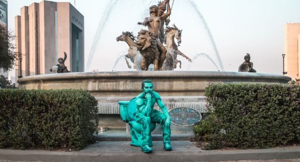 En México, donde la crisis hídrica se ha vuelto cada vez más evidente, el tema del saneamiento se relaciona no sólo con la salud pública, sino también con el uso responsable del agua. En ese contexto, la empresa regiomontana CATO impulsó esta intervención artística en la Fuente de Neptuno, que representa la importancia del abasto de agua en la ciudad.