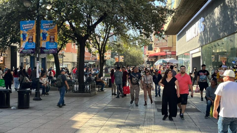 Monterrey.- El centro de Monterrey registró este sábado una notable concentración de peatones y vehículos, derivada de las compras de última hora con motivo de la celebración de la Navidad, lo que generó alta movilidad en calles comerciales y avenidas principales del primer cuadro de la ciudad.