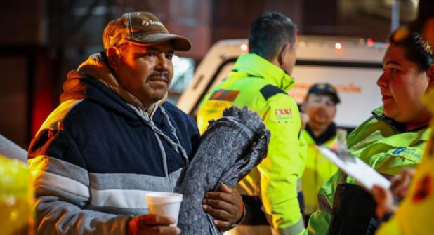 Entre las acciones que se realizan se encuentra la entrega de bebidas calientes y cobijas con el objetivo de mitigar los efectos del frío y proteger la salud de la población.