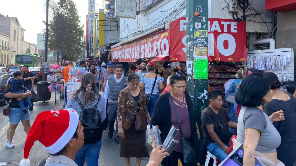 Decenas de regiomontanos acudieron al primer cuadro de la ciudad con la intención de adquirir regalos, ropa, juguetes y artículos para la cena navideña, lo que generó un notable incremento en la afluencia peatonal y en el tráfico vehicular de la zona.