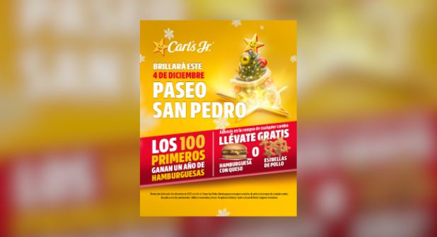 La cita es este 4 de diciembre en Carl’s Jr. Paseo San Pedro, donde te esperan promociones exclusivas y un inicio lleno de sabor. ¡Hazlo a lo grande y vive la apertura!