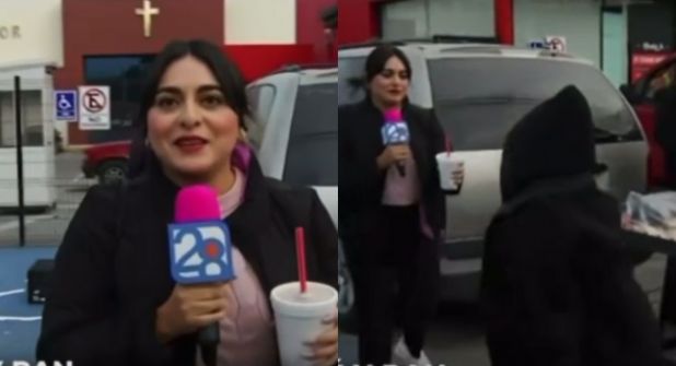 El momento de la agresión se registró en plena trasmisión en vivo que la reportera realizaba para el noticiero matutito de Canal 28.