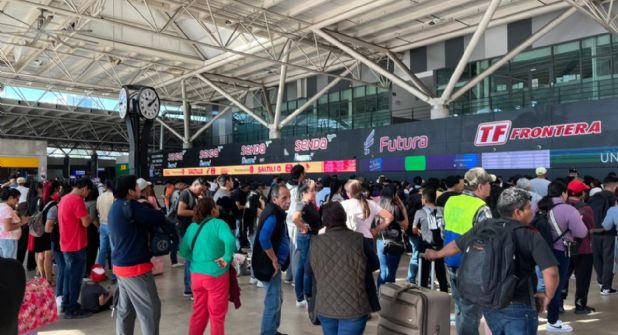 Con maletas, mochilas y cajas en mano, los recién llegados formaban filas en las áreas destinadas al servicio de taxi, donde la espera se prolongaba varios minutos debido a la cantidad de usuarios que solicitaban transporte para dirigirse a distintos puntos de la zona metropolitana.