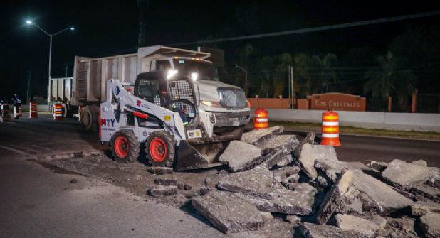 Monterrey. - El municipio de Monterrey llevó a cabo un operativo emergente durante la madrugada de este jueves para reparar alrededor de 400 metros cuadrados de carpeta asfáltica en la Carretera Nacional.