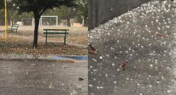 La lluvia acompañada con granizo comenzó a registrarse alrededor de las 18:00 horas de este martes, lo cual causó sorpresa entre los ciudadanos, pues tan sólo el día de ayer, lunes se alcanzó una temperatura de 29 grados y durante esta mañana la temperatura cálida seguía presente.