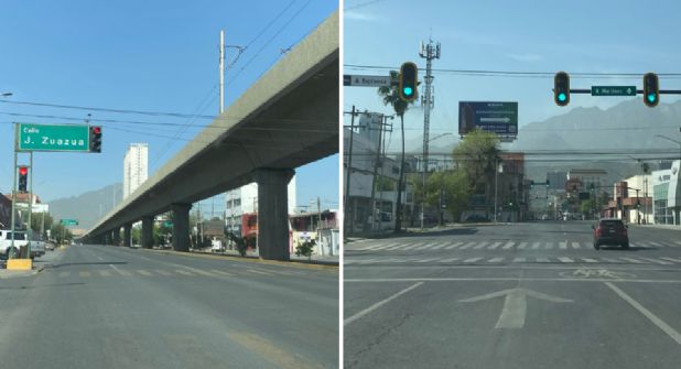 E incluso, en otro recorrido realizado por la tarde en avenidas como Constitución y Revolución, lugares donde a cada hora se puede ver el congestionamiento vial, también lucieron casi vacías, pues eran pocos los automóviles que circulaban por la zona.