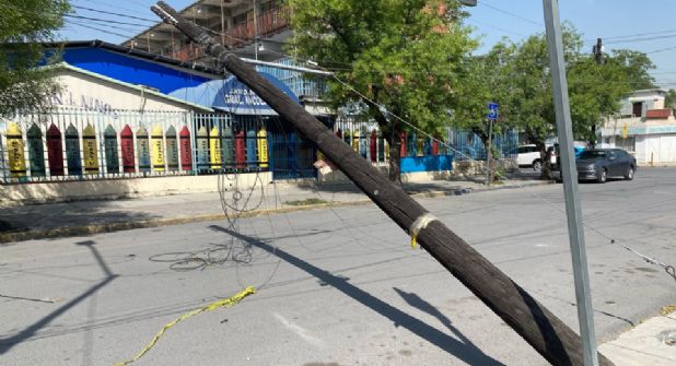 Monterrey.- Luego de casi dos semanas de que un tráiler tumbara dos postes de luz en la colonia Moderna del municipio de Monterrey, es fecha de que uno de ellos sigue casi caído, por lo que, vecinos de la zona se mostraron inconformes ante la situación.