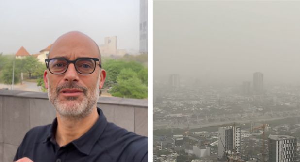 Mediante un video publicado en su cuenta de X, antes Twitter, Treviño de Hoyos se mostró frente a la cámara al mismo tiempo que invitó a la población a que vieran en las imágenes como el paisaje se veía opacado por el polvo y las partículas contaminantes, afectando al medio ambiente.
