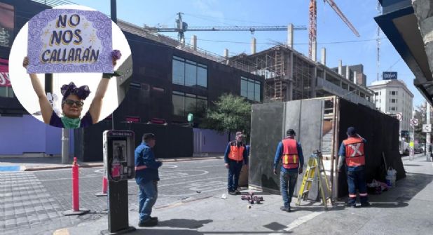Monterrey. - En anticipación a las manifestaciones del Día Internacional de la Mujer este 8 de marzo, diversos edificios y accesos a la estación Zaragoza del Metro han sido cubiertos con láminas de madera.