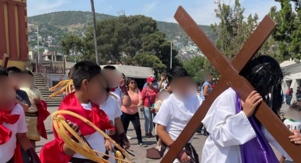 Monterrey.- Con mucha fe y devoción, niñas y niños de la colonia Independencia participaron en un emotivo Viacrucis viviente, como parte de las celebraciones de Semana Santa.